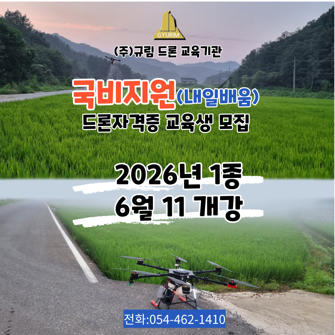 안녕하세요. 규림드론 교육원입니다. 국비지원 6월11일 개강 드론자격증반 교육생 모집 합니다.